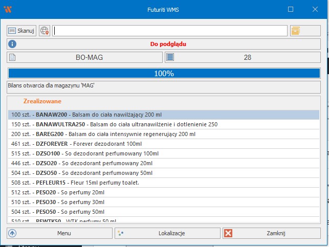 – Aktywuj synchronizację bez migracji stanów – klawisz uruchomi synchronizację dokumentów i pozwoli na pracę na systemie, jednak nie będziemy posiadali żadnego towaru na stanie w WMS i będzie wymagana realizacją inwentaryzacji. - Jeżeli została wybrana pierwsza opcja, został utworzony dokument Bilans Otwarcia.