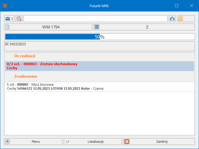 - Realizacja w WMS dokumentu utworzonego w EPR Optima