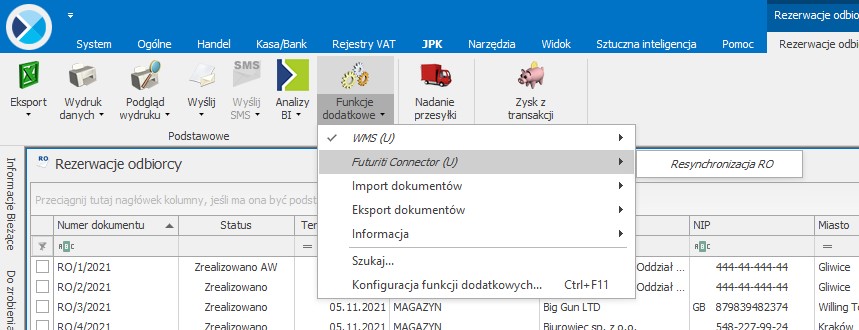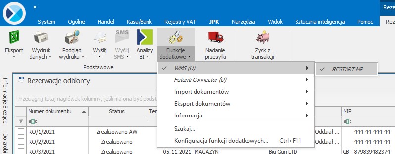 - Realizacja w WMS dokumentu utworzonego w EPR Optima