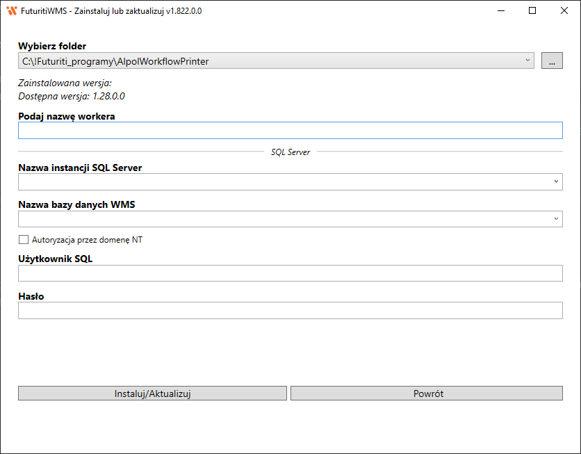 • Lista rozwijana umożliwia wybór instancji worker’a, która już jest zainstalowana w katalogu „!Futuriti_programy”.