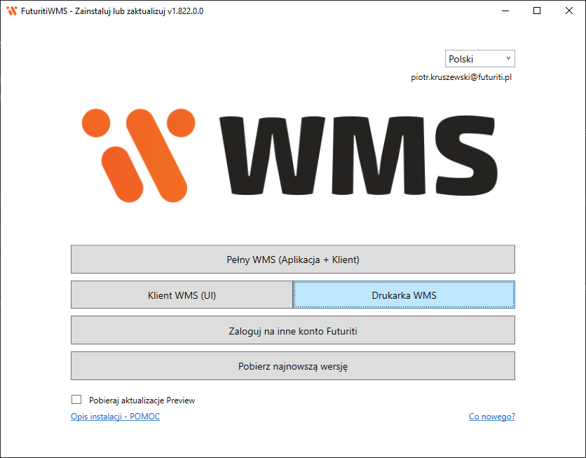 1. Uruchom instalator WMS i zaloguj się na swoje konto Futuriti