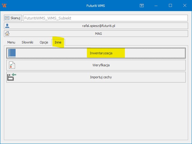 - Aby rozpocząć wejdź w zakładkę INNE -> INWENTARYZACJA