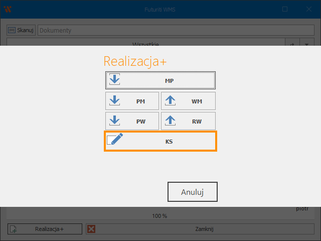 W celu poprawy stanów magazynowych po stronie WMS, można wykorzystać dokument KS (korekta stanów). Taki dokument nie jest synchronizowany do ERP i pomija mechanizmy weryfikacji stanów, pozwalając dodać lub odjąć dowolne ilości magazynowe, przez co powinien być używany ostrożnie i w ostateczności.