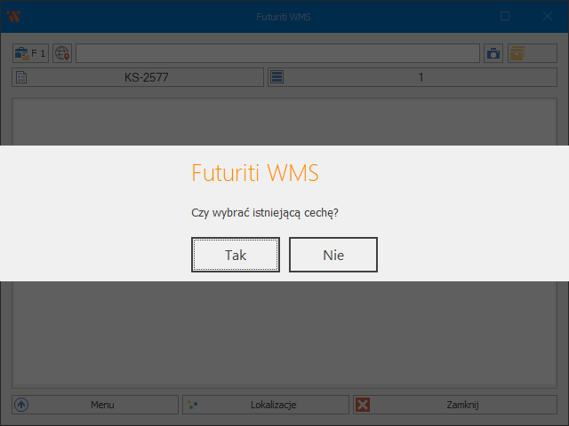 Jako, że WMS traktuje każdy wpis cech z osobna, może być wymagane wskazanie konkretnego wpisu do modyfikacji (np. w przypadku, gdy na formatce stanów magazynowych dana cecha widniała w ilości ujemnej) w takim przypadku należy wybrać „Tak„, co spowoduje otwarcie listy z wyborem istniejących cech. Jeśli nie nie ma takiego wpisu lub użytkownik chce dodać nową cechę, opcja „Nie” otworzy formatkę dodawania cechy podobnie jak na dokumentach przyjęć