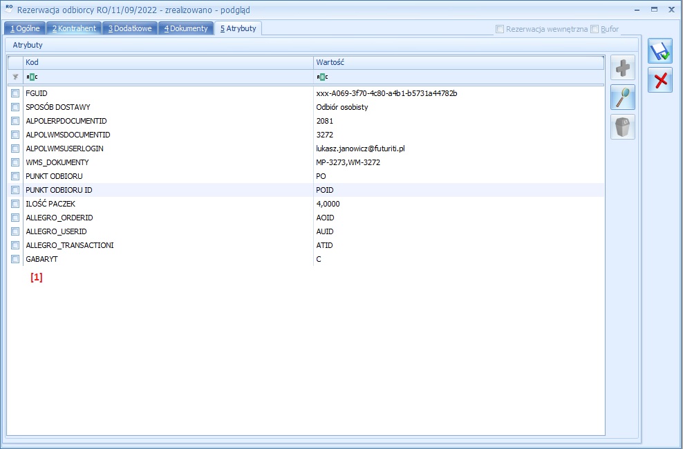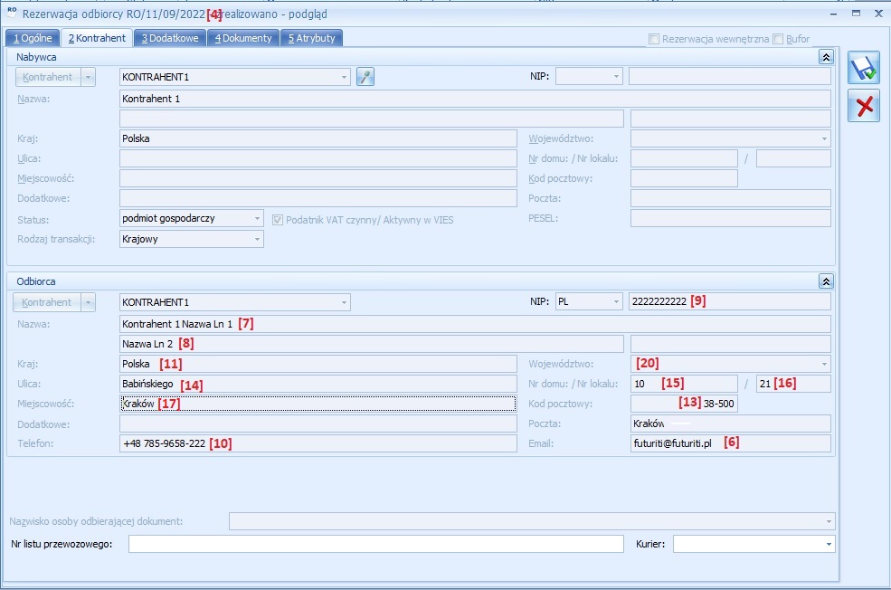 | [Email] | E-mail kontrahenta odbiorcy [6] | |