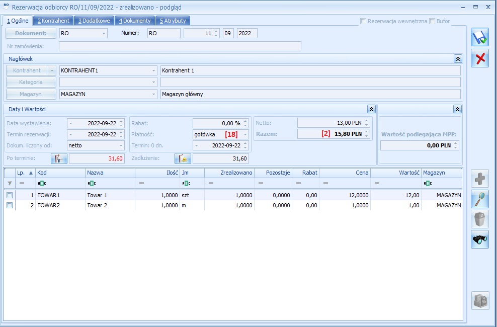 | [PaymentMethod] | Forma płatności dla dokumentu RO [18] | |