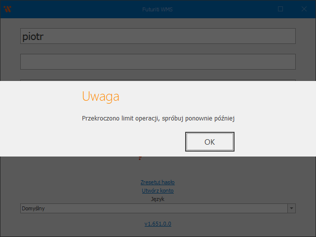 W przypadku, gdy konto użytkownika powiązane jest z kontem Futuriti oraz użytkownik nie posiada dostępu do instancji WMS lub konto jest nieaktywne zostanie wyświetlony stosowny komunikat.