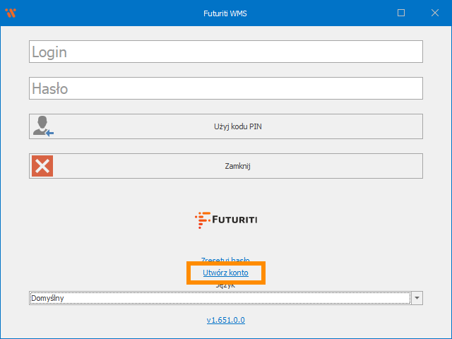 Na stronie logowania istnieje opcja zarejestrowania konta Futuriti
