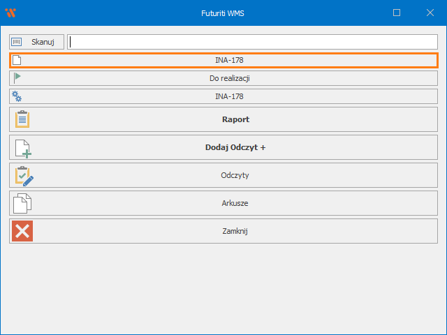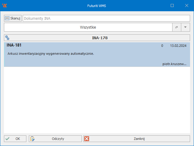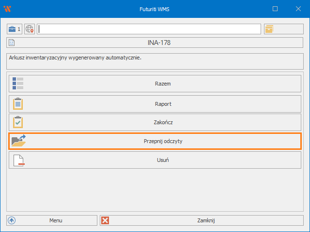 W ERP utwórz nowy arkusz inwentaryzacyjny i przekaż go do realizacji w WMS. Nie dodawaj żadnych odczytów do nowego arkusza.