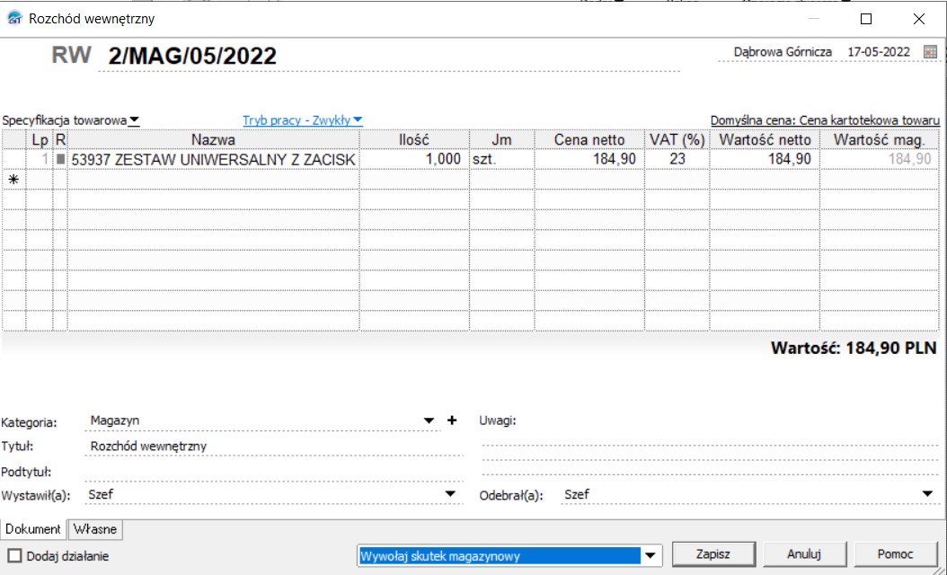 Obsługa przyjęć i wydań wewnętrznych (PW/RW)