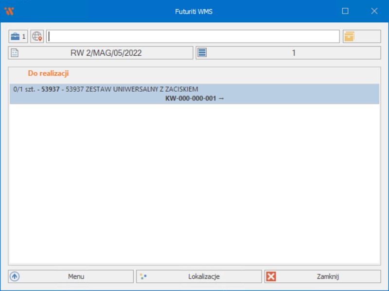 - Dokument zostanie zsynchronizowany do Futuriti WMS jako WM (dla rozchodu wewnętrzego – RW) lub jako PM (dla przyjęcia wew. PW):