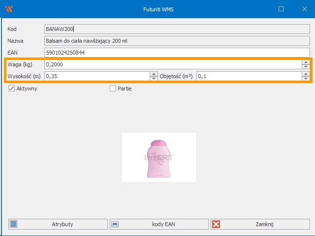 Parametry towaru można zmodyfikować na dwa sposoby zależnie od konfiguracji WMS.