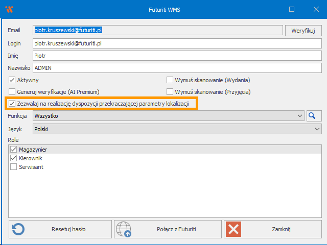 Jeśli zatwierdzi go, system doda towar do lokalizacji mimo przekroczenia jej parametrów.