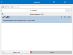 - Następnie w Futuriti WMS wybierz arkusz i przekaż go do realizacji.