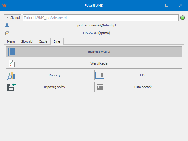 Aby rozpocząć inwentaryzację w WMS w menu głównym WMS przejdź do zakładki Inne → Inwentaryzacja