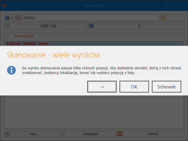 Od wersji WMS 1.820 komunikat ten może zostać wyłączony za pomocą konfiguracji ShowMultipleResultsNotification