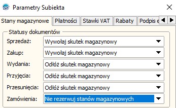 Wymagany do edycji statusów dokumentów PW/RW/MM/ZK. Poniżej zalecane ustawienia parametrów subiekta. (Widok -> Administracja -> Parametry -> Parametry Subiekta)