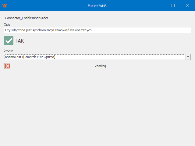 W celu aktywowania synchronizacji rezerwacji wewnętrznej należy włączyć w konfiguracji „Synchronizacja zamówień wewnętrznych” (Sync Connector_EnableInnerOrder)