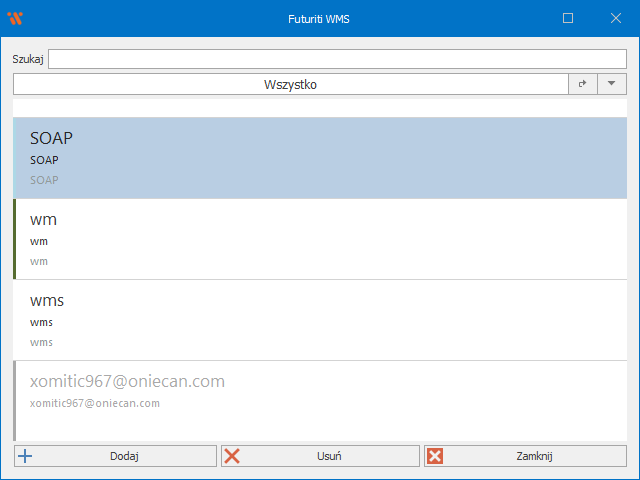 • Login → Nazwa użytkownika, służy jako login do WMS