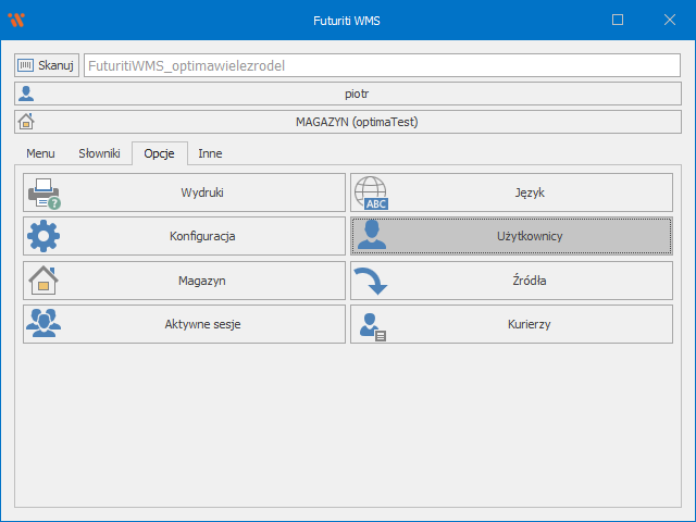 Lista użytkowników znajduje się w menu głównym WMS, Menu główne → Opcje → Użytkownicy